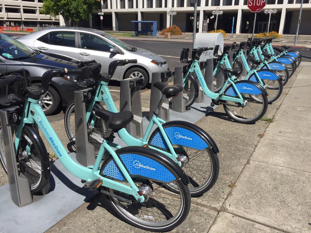 然而,就在找寻自行车的过程中,我们发现了一些有意思的现象。并不是说没有自行车,还真的有共享自行车,就是下面这种(BayArea BikeShare):