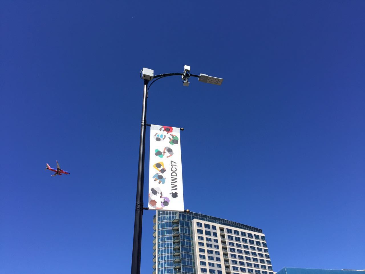 其实,在下了飞机进入圣何塞这座城市时,WWDC的气息已经迎面而来,因为在街道的两边,已经悬挂了WWDC的旗帜,很是显眼。