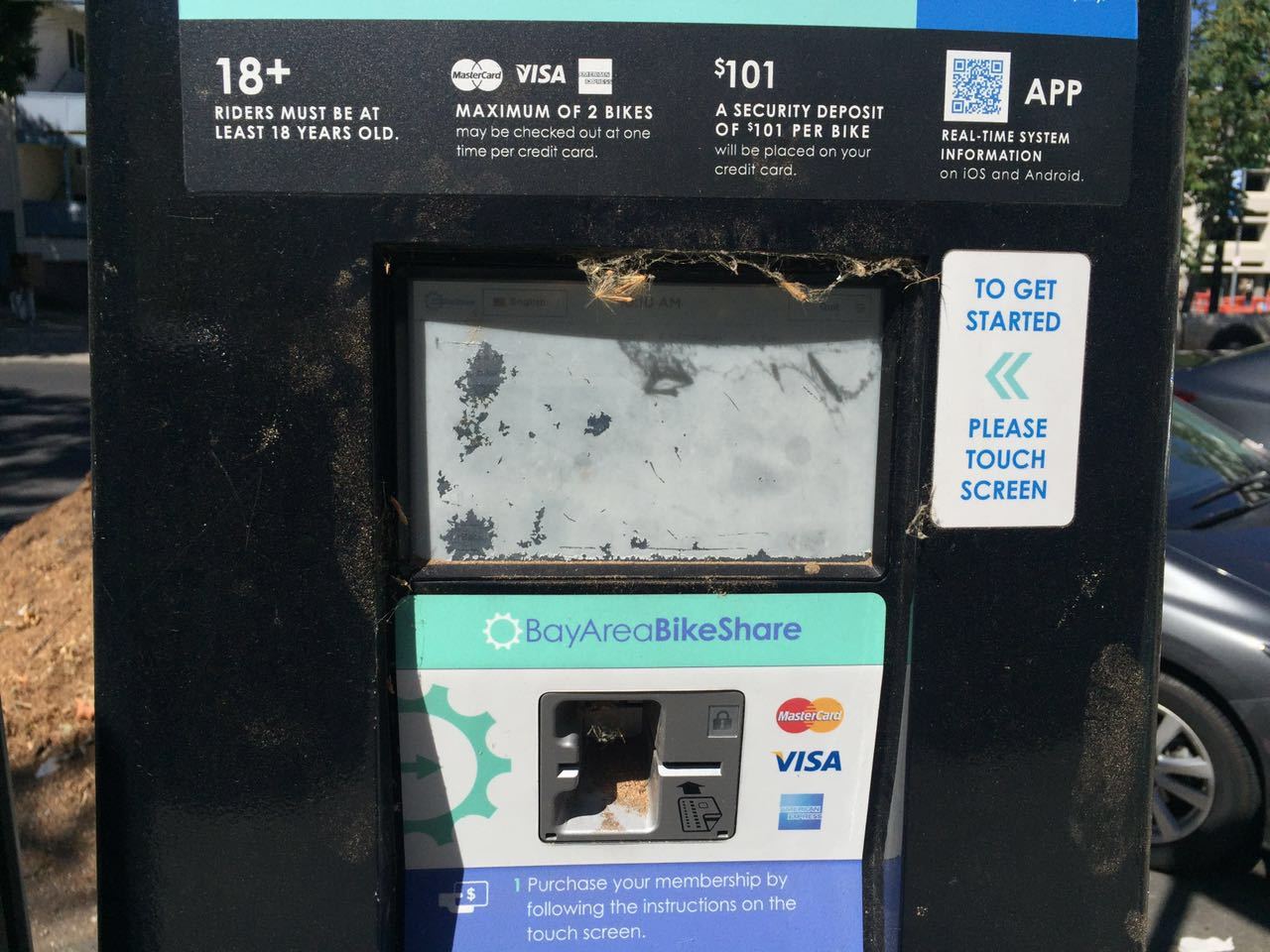 然而,就在我们准备刷卡租用时,却发现刷卡机很明显已经荒废多时,触屏也完全没反应,也就是说这样一个自行车租用位置,行同于摆设。