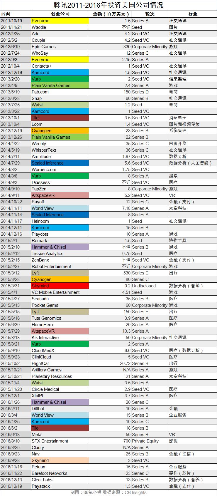 那么,腾讯在美国都投资一些什么行业的公司捏?