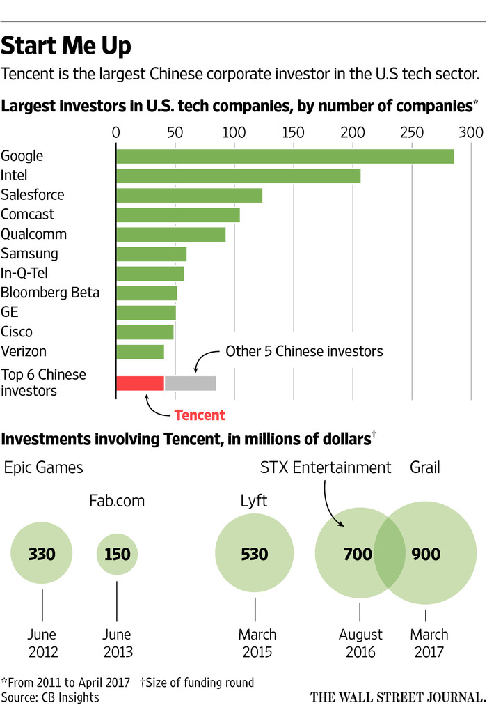 腾讯成为美国科技创业公司最大中国投资者:社交、游戏,还投了9家医疗企业