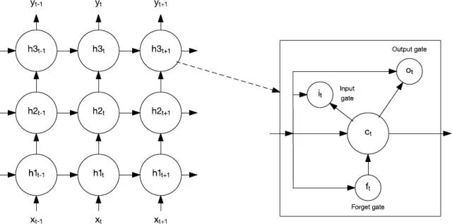 记忆单元包含了能够控制信息流入或者流出该单元的一些门。输入门(input gate)控制什么时候新的信息可以流入记忆单元。遗忘门(forget gate)控制一段信息在记忆单元中存留的时间。最后,输出门(output gate)控制输出何时使用记忆单元中包含的信息。记忆单元还包括控制每一个门的权重。训练算法(通常是通过时间的反向传播(backpropagation-through-time),反向传播算法的一种变体)基于所得到的误差来优化这些权重。
