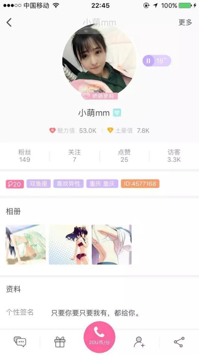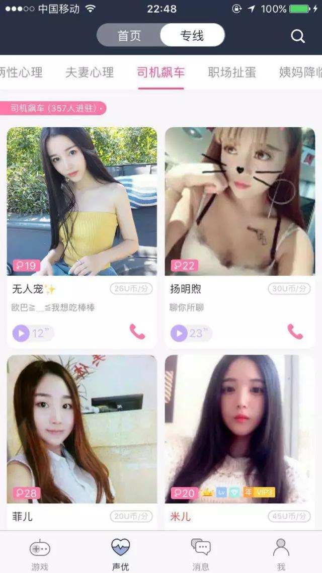 但有的APP单开语音交友版块,玩家可进入感兴趣的主题房间聊天、互动、送礼,有点像语音直播间。有的则有声优版块,玩家可挑选感兴趣的声优付费通话。但这两个版块都有些打擦边球的嫌疑。刺猬公社随机打开一些语音,内容和声音都让人充满情色联想。