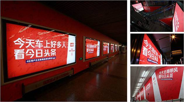 此前一个引发争议的案例是今日头条的户外交通广告。“今天男朋友陪,看今日头条”、“今天婚礼是一门生意,看今日头条”、“今天人工智能开挂了,看今日头条”、“今天星期四,看今日头条”等广告,出现在不少城市的地铁站、分众屏幕和公交站牌上。