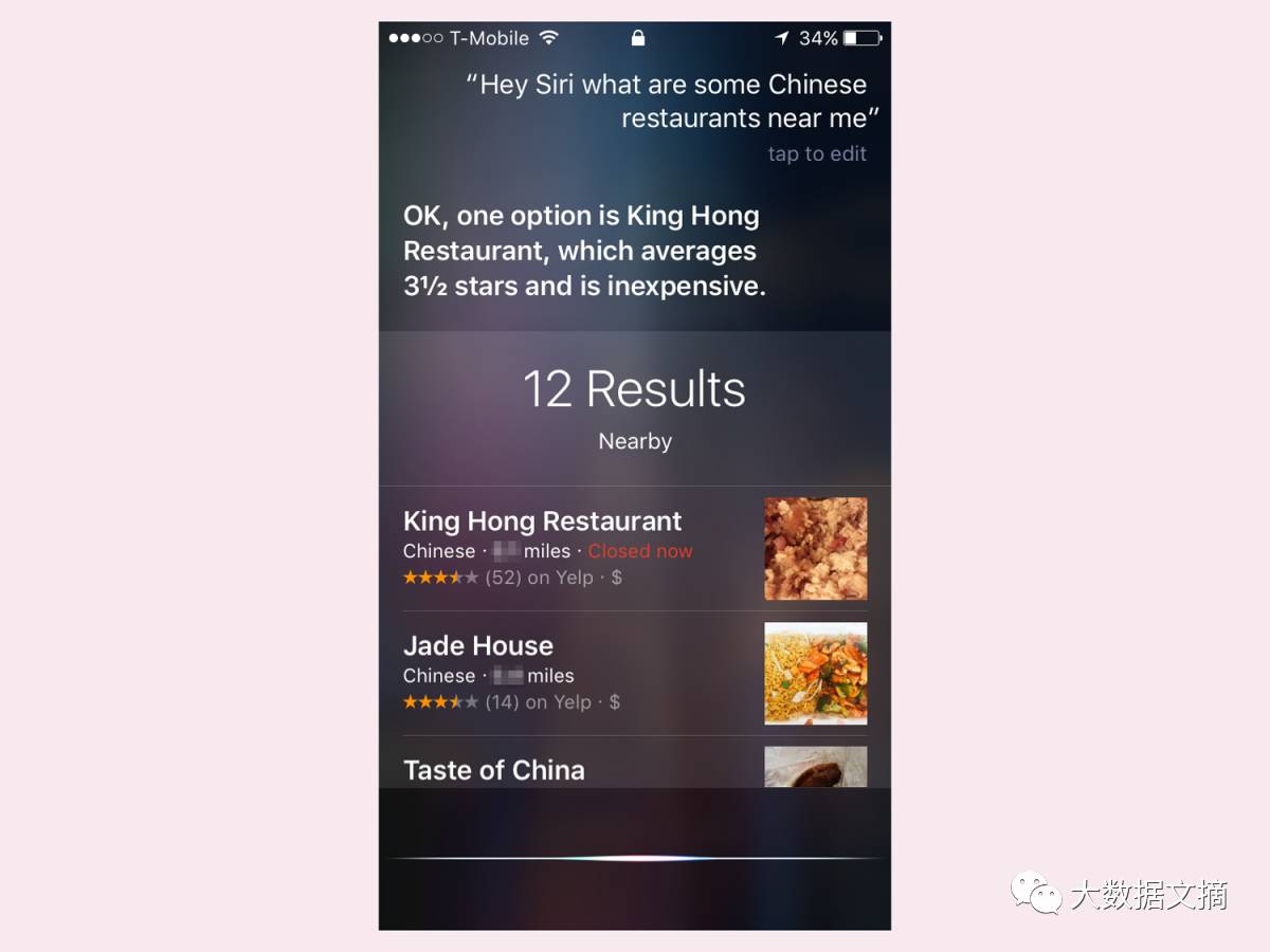 四个助手都能够找到一些好的中餐馆,不过我更喜欢Siri,因为它还给我订到了一个座位。