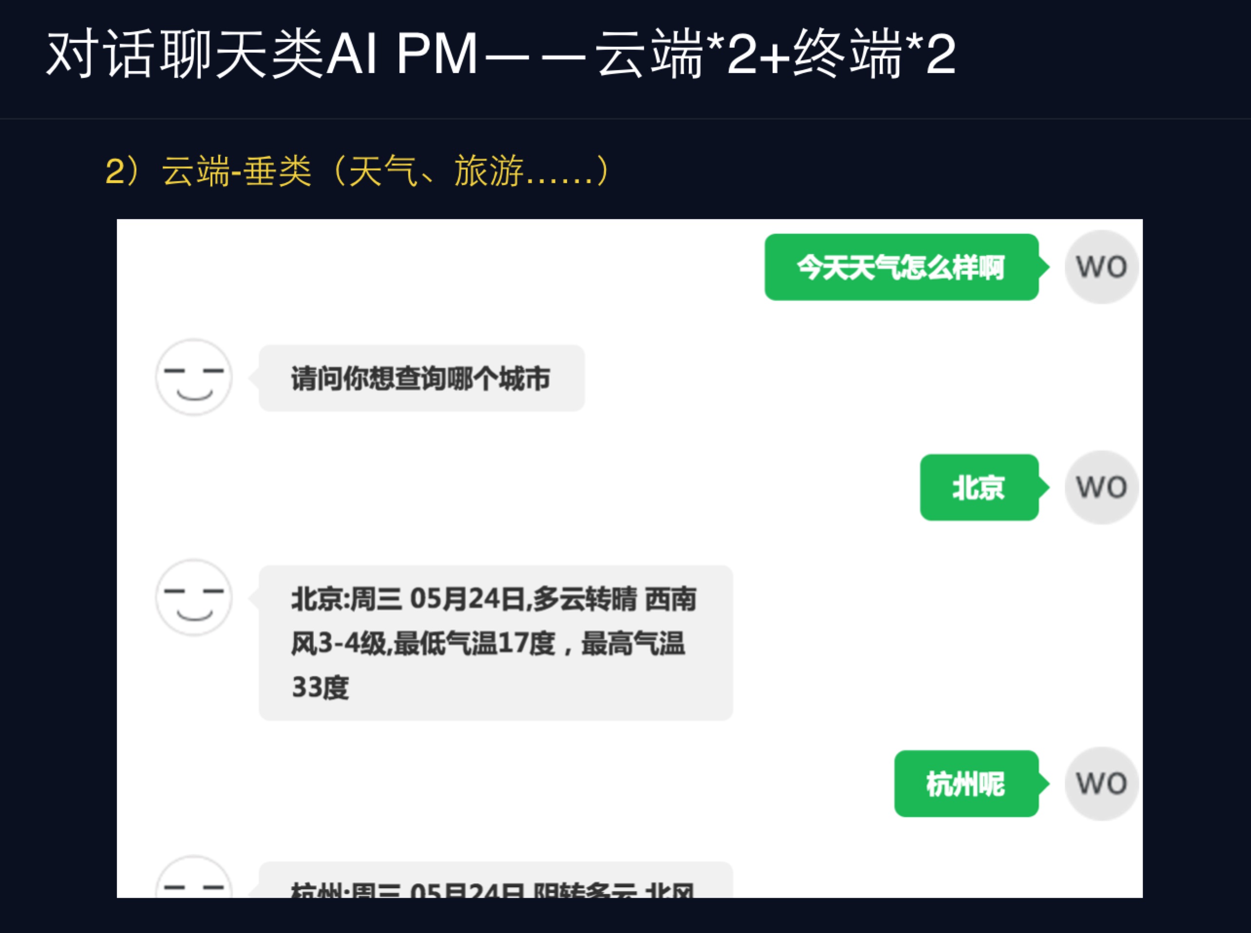 第二个,还是做云端产品,是某个具体垂直领域的对话流程设计,行业内叫“垂类”PM。