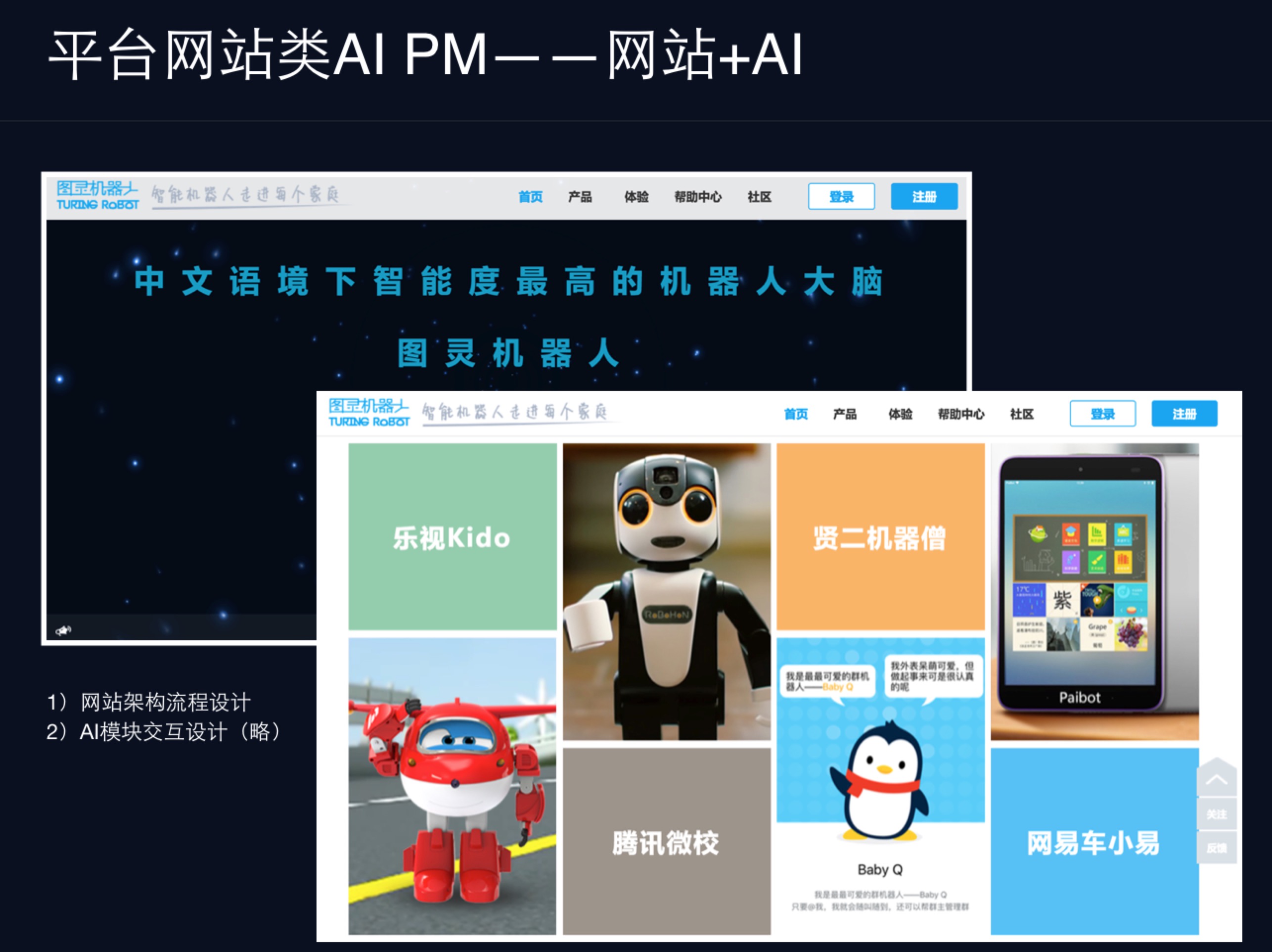 比如将AI能力通过API开放出来(例如图灵机器人开放平台)。这种AI PM,需要更多的面向开发者的产品经验。