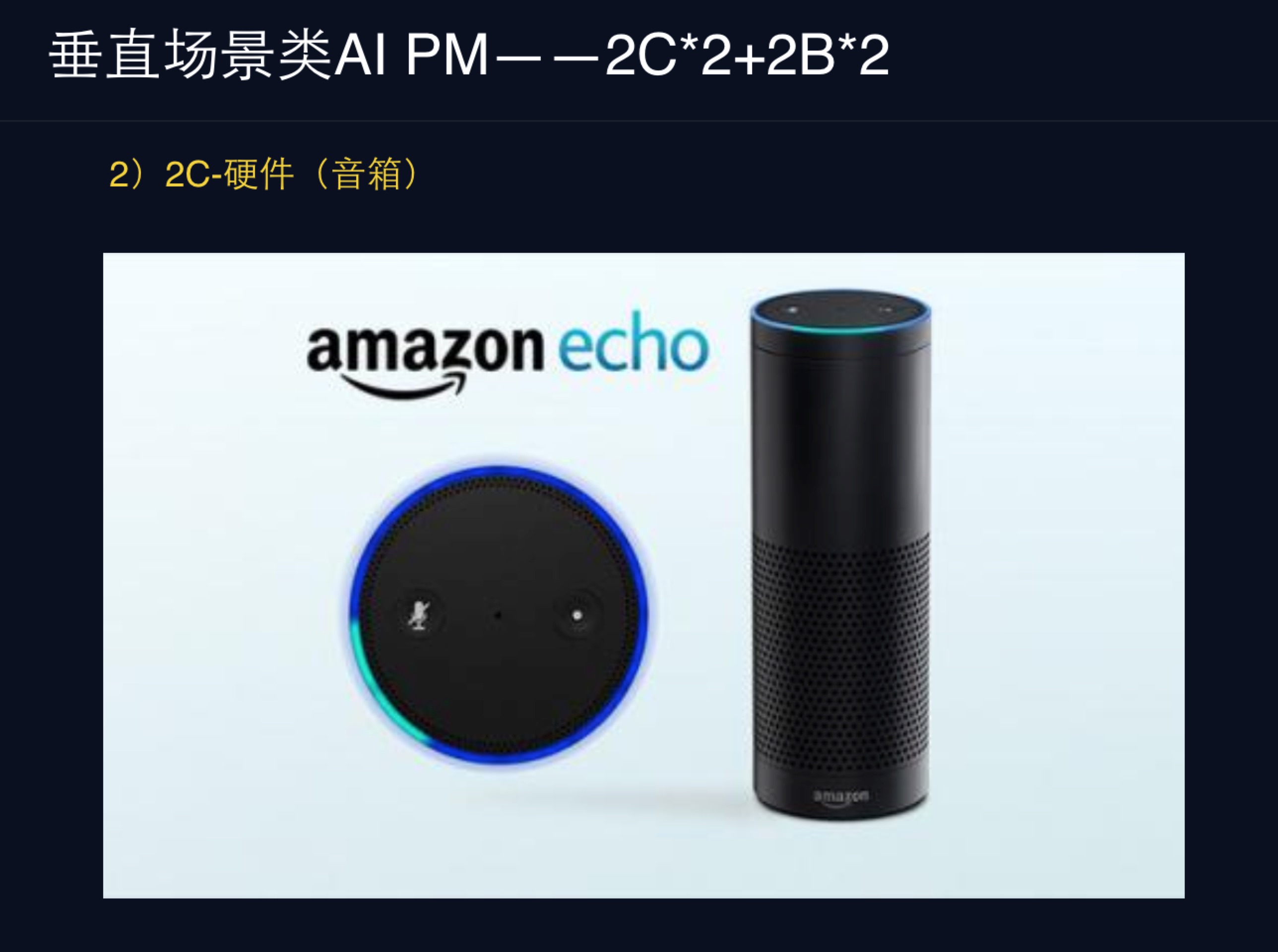 缺乏落地的产品,特别是缺乏爆款的2C产品。亚马逊的echo在美国卖得不错,但这种产品形态否适合中国人的文化习惯、是否也能成为爆款,还有待观察。