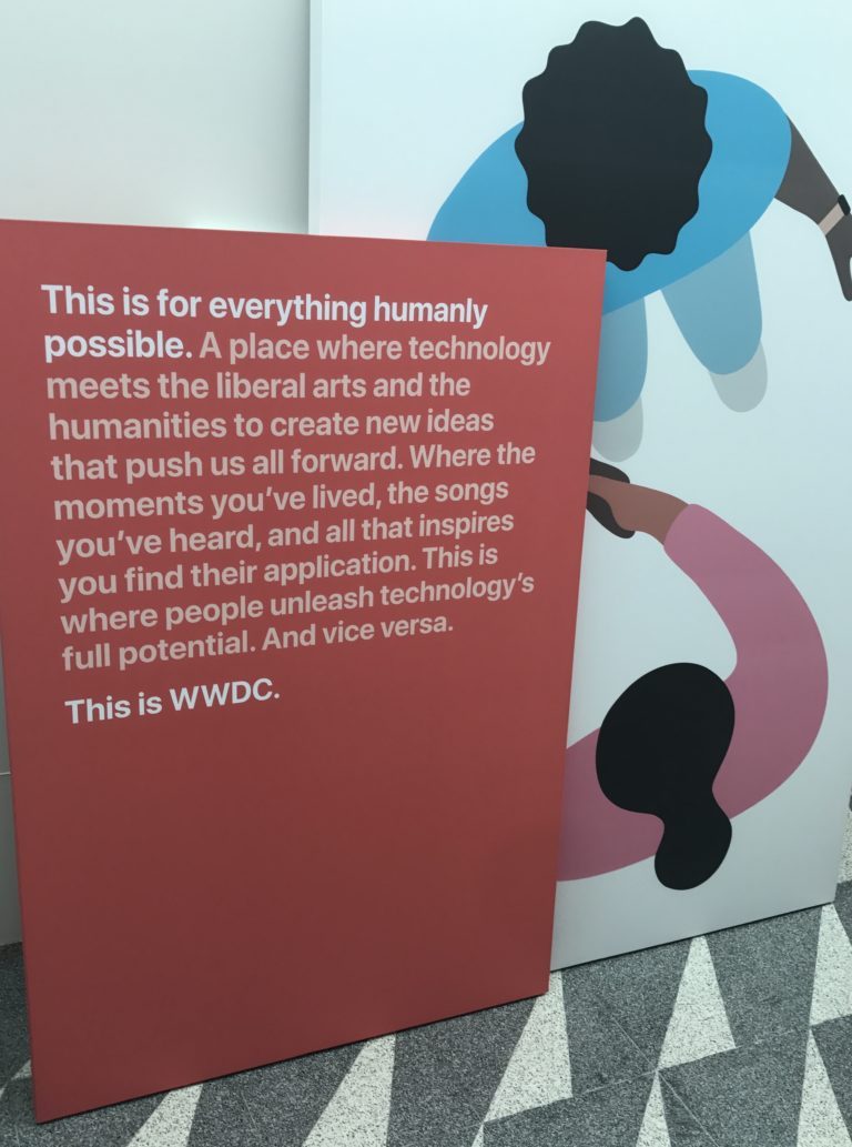 苹果的年度开发者大会(WWDC)都会在圣何塞 McEnery 会议中心举办,这感觉有点奇怪,McEnery 会议中心和附近的艺术品都体现着以人为本的理念,苹果可能试图在用我们熟悉的声音传达熟悉的信息: