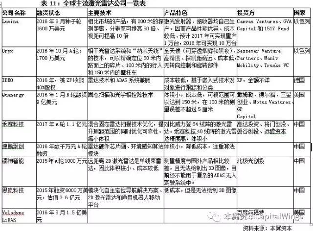 激光雷达属于创新型技术,尚未实现商业化量产,当下的主要生产厂商也多为创业型公司。