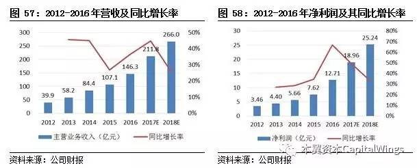 2012-2016年公司营业总收入由39.93亿元增长至146.3亿元,四年间的年均复合增速达到38%,公司净利润由3.46亿元增长至12.7亿元年均复合增速38%,业绩表现优异。