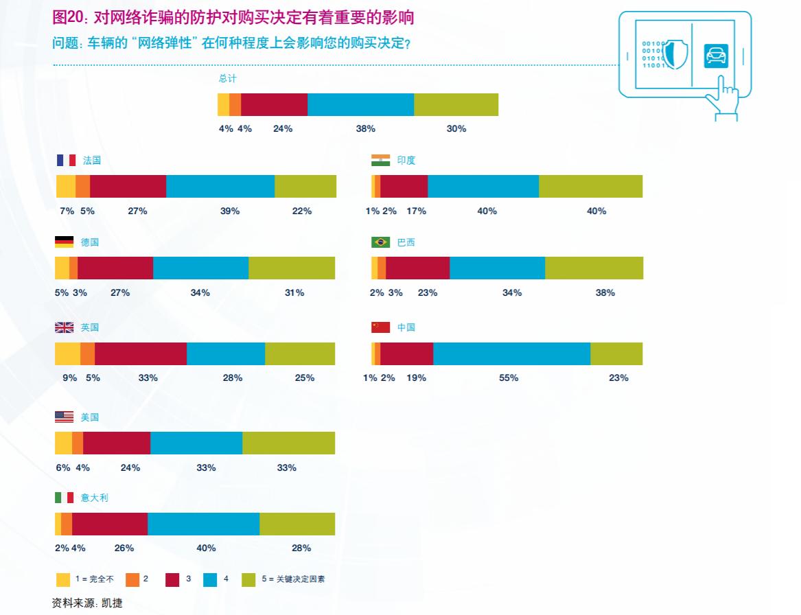 2015年,三分之一的受访者担心存在网络安全问题。前不久爆发的“WannaCry”勒索病毒一度让雷诺日产汽车工厂停产,工厂尚且可以停产,如果病毒入侵了正在高速行驶的汽车,我们该怎么办?消费者需要制造商做出保证汽车安全性的附加承诺,调研数据显示,超过三分之二(68%)的购车者表示,车辆的“网络弹性”会影响他们的购买决定。