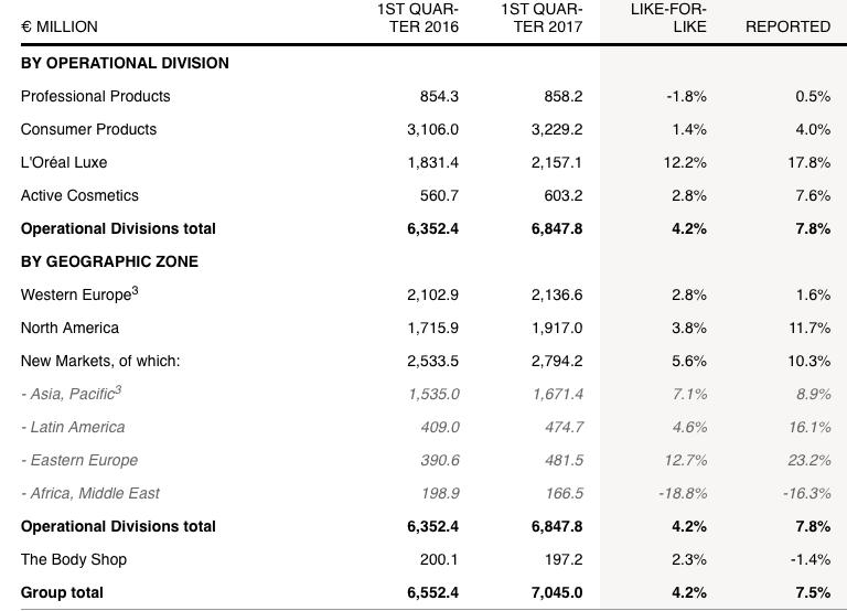 欧莱雅集团今年4月发布的2017年第一季度财报显示,其该季度营收为68.5亿欧元,同比增长4.2%。高端化妆品部门销售额为21.6亿美元,实现了12.2% 的增长。其中亚洲地区贡献了24%的销售额,中国成为高端化妆产品消费的主力军。而The Body Shop销售额为1.972亿欧元,同比下降1.4%。和集团的其他业务相比,差距还是很明显的。