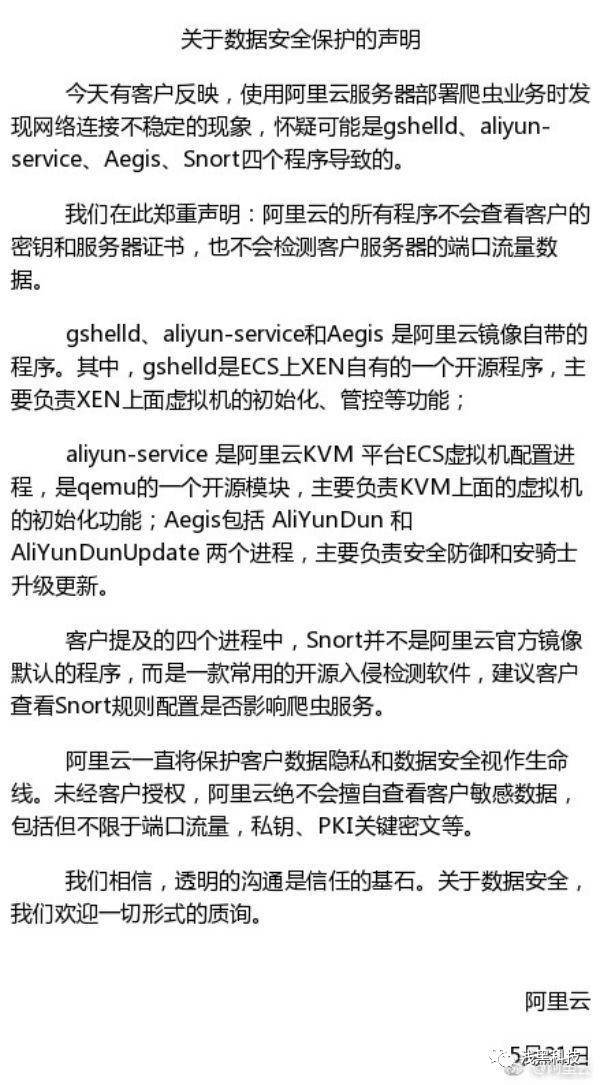 阿里云活了8年,如果连用户数据隐私保护都做不好,就不配活在世界上,就应该倒闭。我们会追究所有造谣者的法律责任。
