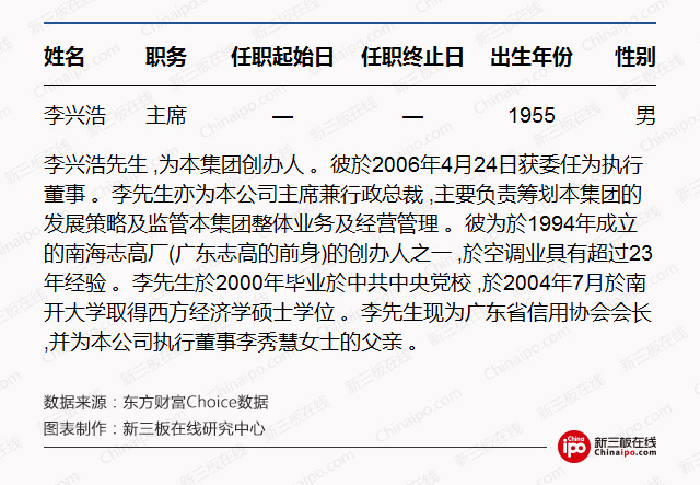 虽然深装总是一家新三板公司,不过其大股东李兴浩可不简单。据悉,李兴浩目前是一家在港上市的志高控股(00449.HK)的实际控制人,并且还担任公司的董事会主席加行政总裁。