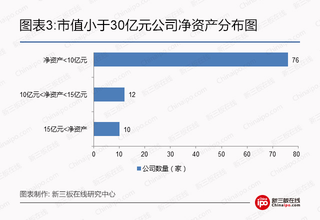 通过筛选,A股中市值小于30亿元的公司共有209家,排除2016年后新上市、创业板公司后,还有105家公司可供选择。进一步分析这105家公司可以发现,净资产小于10亿元的公司数量最多,达到76家;其次是10亿-15亿的,有12家;净资产大于15亿元的公司则只有10家。