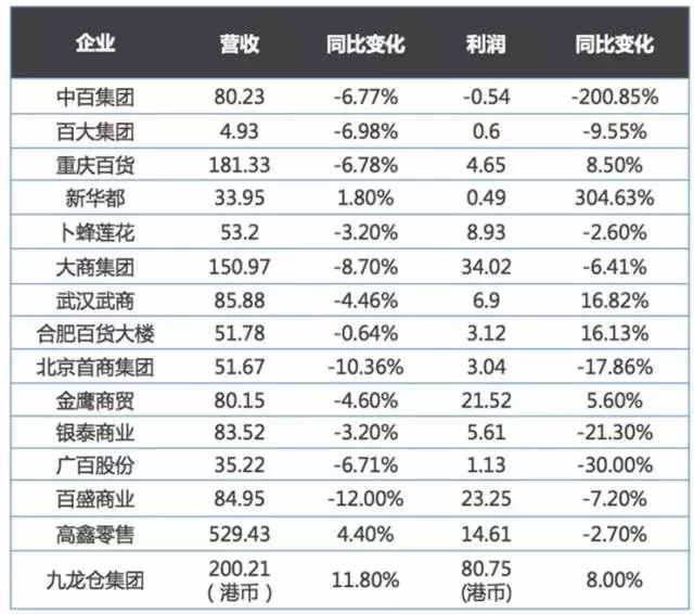 15家百货企业2016年上半年财报数据(单位:亿元)