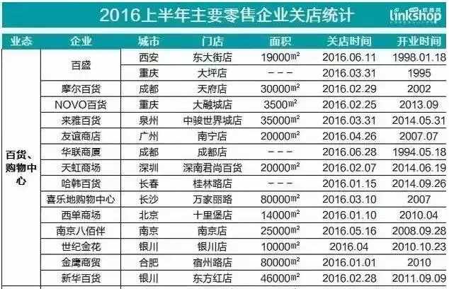 2015年7月万达公布全国关闭或调整45家店,引发了业内对于百货“关店潮”的关注。2016年“闭店潮”现象仍在持续,2016年上半年,全国共关闭15家百货。