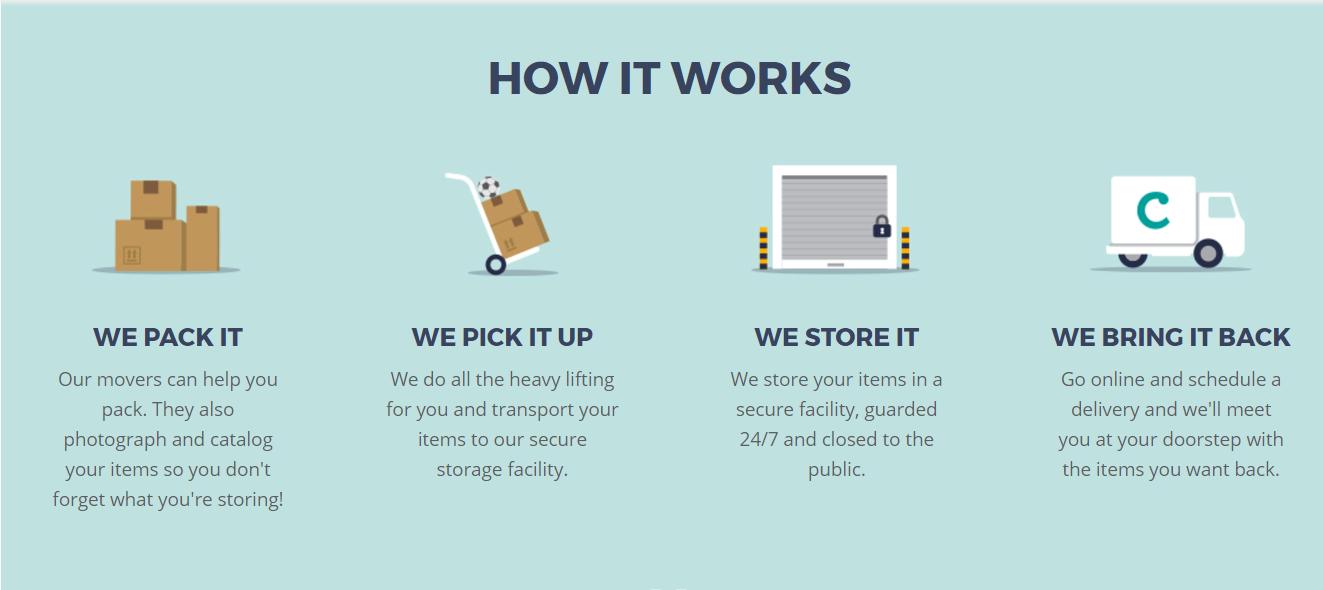 Clutter 成立于2013年,主要为用户提供按需仓储+上门搬运的创业公司。其服务模式非常简单,首先,用户需要在Clutter的app或web端网站下单,将需要储存的物品进行拍照;随后Clutter的工作人员会在48小时之内上门取件;取件之前, Clutter会帮助用户打包物品,之后会直接运输到就近的仓储空间。当用户需要取回物品时, Clutter会依据此前为商品的做的标签快速分类并找到商品。