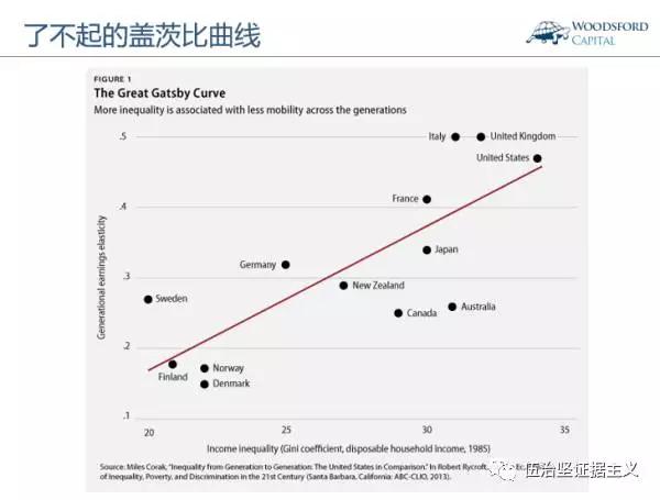 首先,让我来和大家分享一张非常有趣的图表,该图表的名字叫做“了不起的盖茨比曲线”(The great Gatsby curve)。
