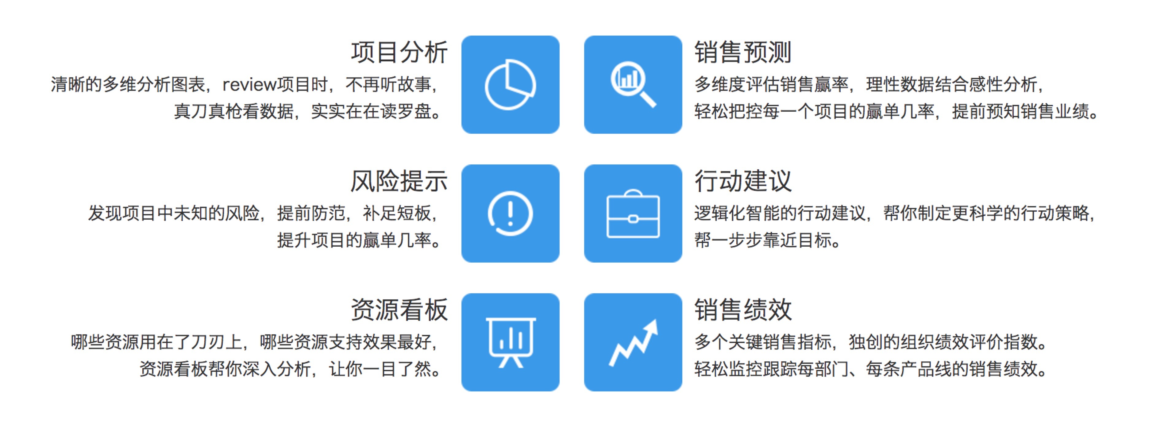 有了这些其实还不够,因为企业销售需要的不仅是培训几堂课程,还得贯穿项目中的不断演练。所以,销售罗盘的核心就是落地一系列大客户销售的方法论。在接触客户后,销售罗盘通过问题的形式,让销售人员录入被拜访者的职位、项目的特点、目前的进展情况等,然后,销售罗盘根据算法,可以分析出项目的优势、短板、风险,是否需要更换接触对象,给到销售策略的建议。