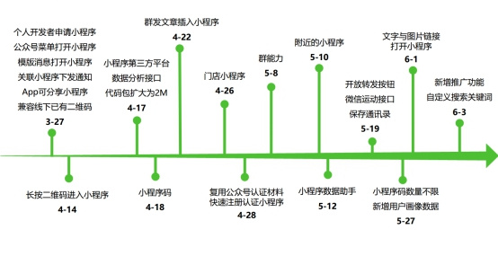 更为重要的是,小程序发展到今天已经构建成丰富的能力矩阵,包括打通了微信支付、开放了附近功能、连通了卡包、加强了社交分享功能以及接入了扫一扫功能等。