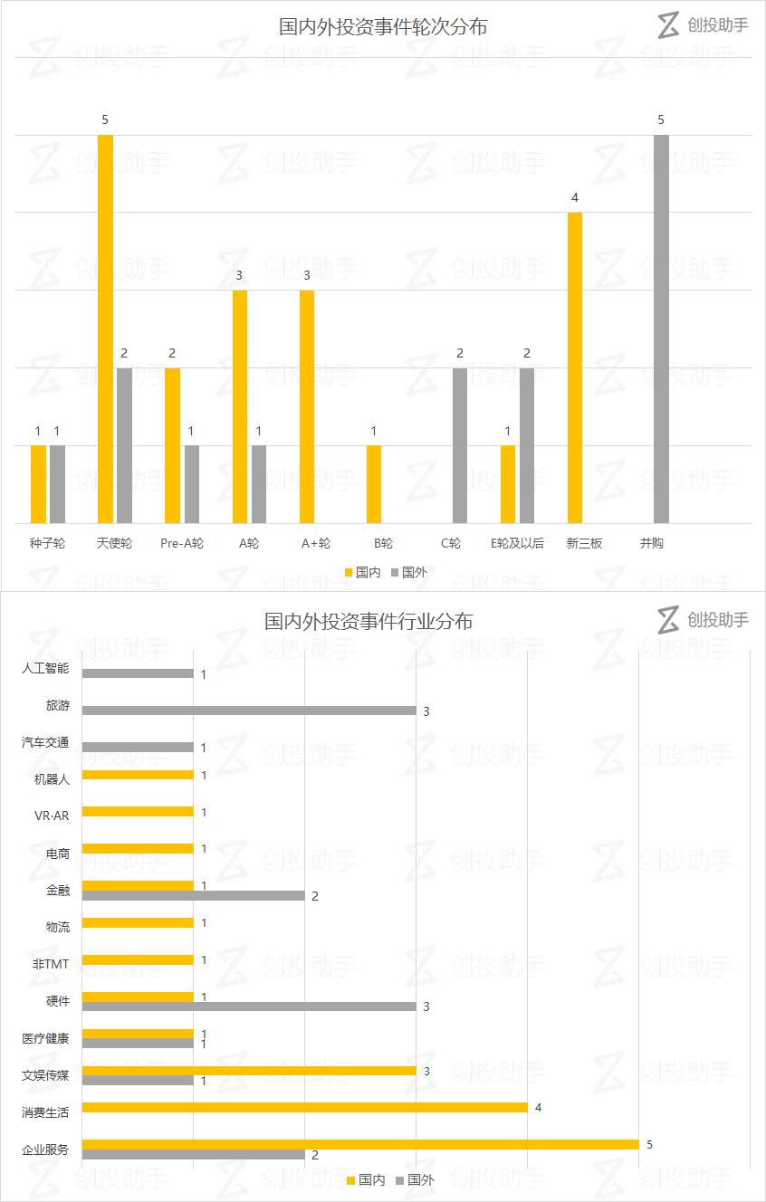 本日国内外共有34起融资事件,分布在14个行业中。国内20个项目获得融资,国外14个项目获得融资。