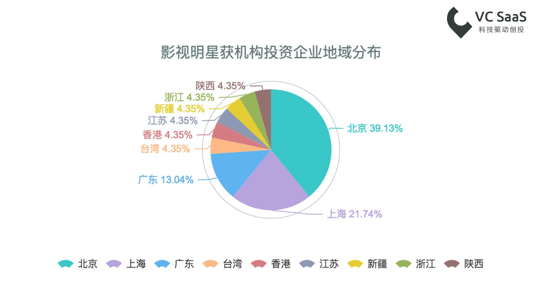 由于资本的聚集和演艺事业的集聚效应,大部分获得机构投资的影视明星创业项目都聚集在北上广,比例达到了73.04%。