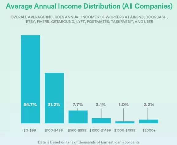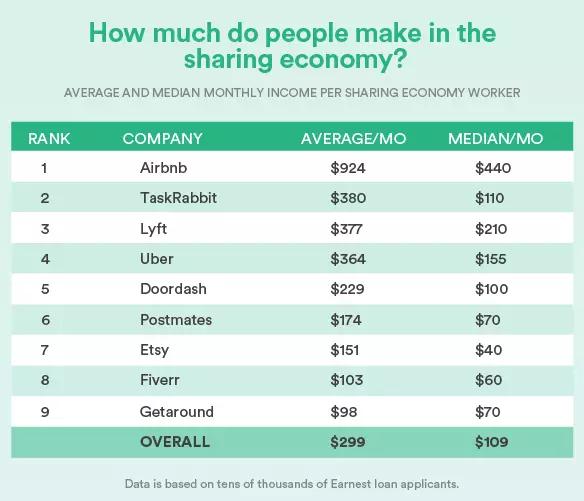 Lyft、Taskrabbit和Airbnb似乎击败了“84%的人低于500美元”的平均水平。