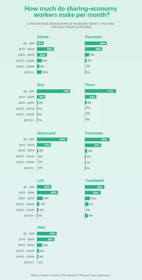 我们分析了贷款提供商Earnest的匿名数据,分析了数万名贷款申请人,以了解有多少人在共享平台上赚了多少钱,以及这些平台的竞争状况如何。