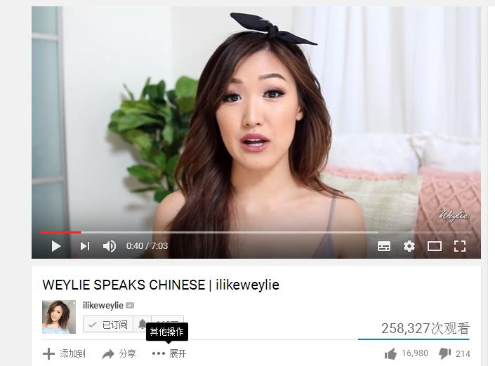 Weylie是个土生土长的美国华裔,也就是俗称的ABC(American Born Chinese)。从2007年第一次在Youtube上发布视频以来,Weylie基本保持着周更的频率,累计发布超过300支视频,而这300+视频,都是用英文录制的。