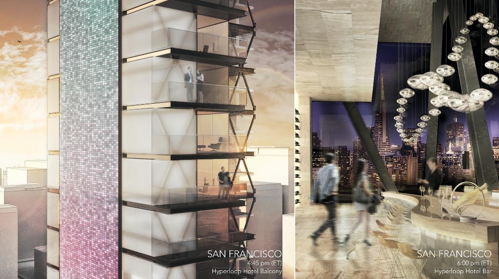 他设计出“Hyperloop酒店”,试图消弭未来美国大多数最大城市间购买单独交通票的需要。他想在美国13地,西雅图,波特兰,旧金山,拉斯维加斯,洛杉矶,丹佛,桑特菲,奥斯汀,芝加哥,纳什维尔,华盛顿特区,纽约市和波士顿,设有13家Hyperloop酒店,酒店间由Hyperloop系统相连。