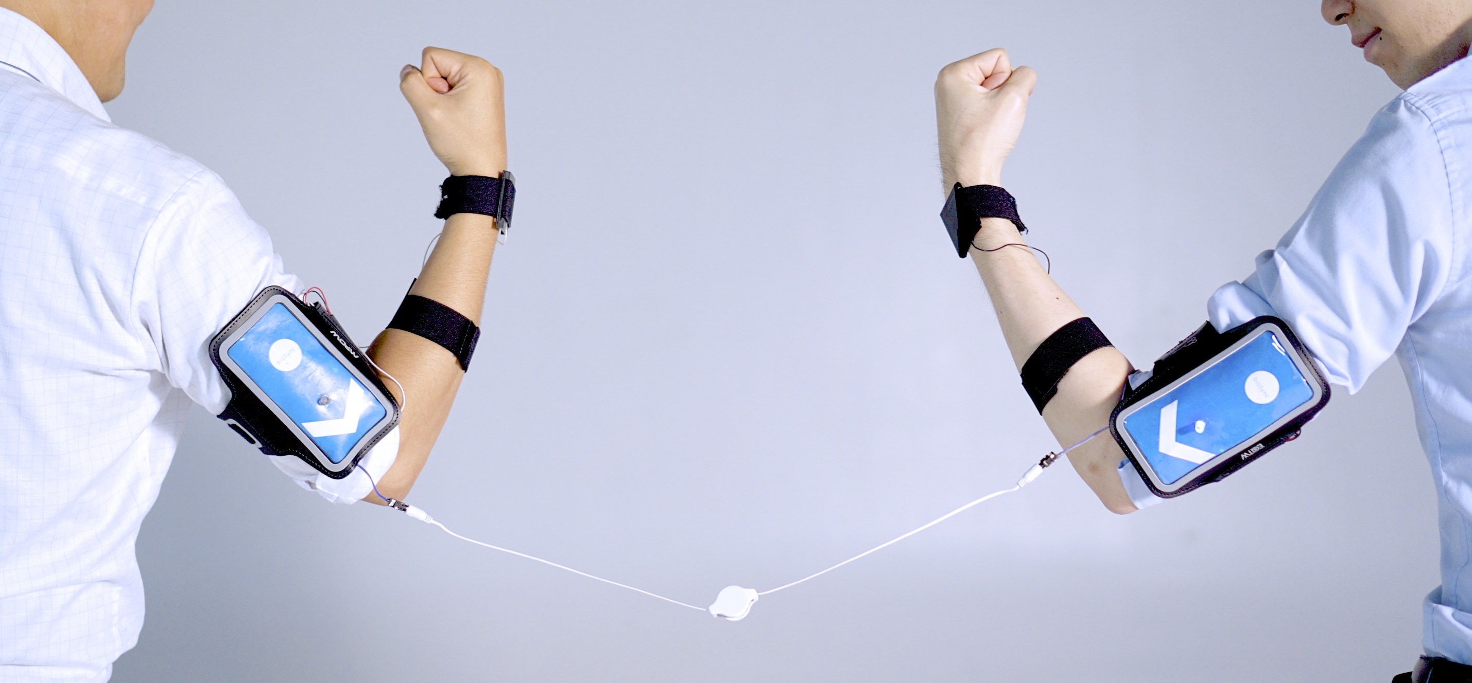 不过在Nishida近期发表的论文中,BioSync已经进化成了功能更强大的Wired Muscle。它不仅能够让使用者互相模仿,还能使他们协同工作。