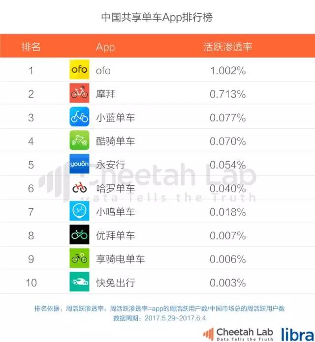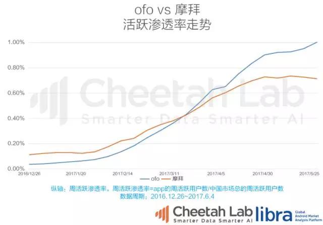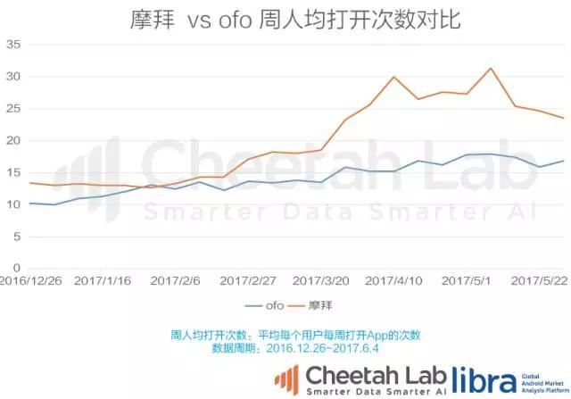 ofo活跃渗透率占优 摩拜人均打开次数高: