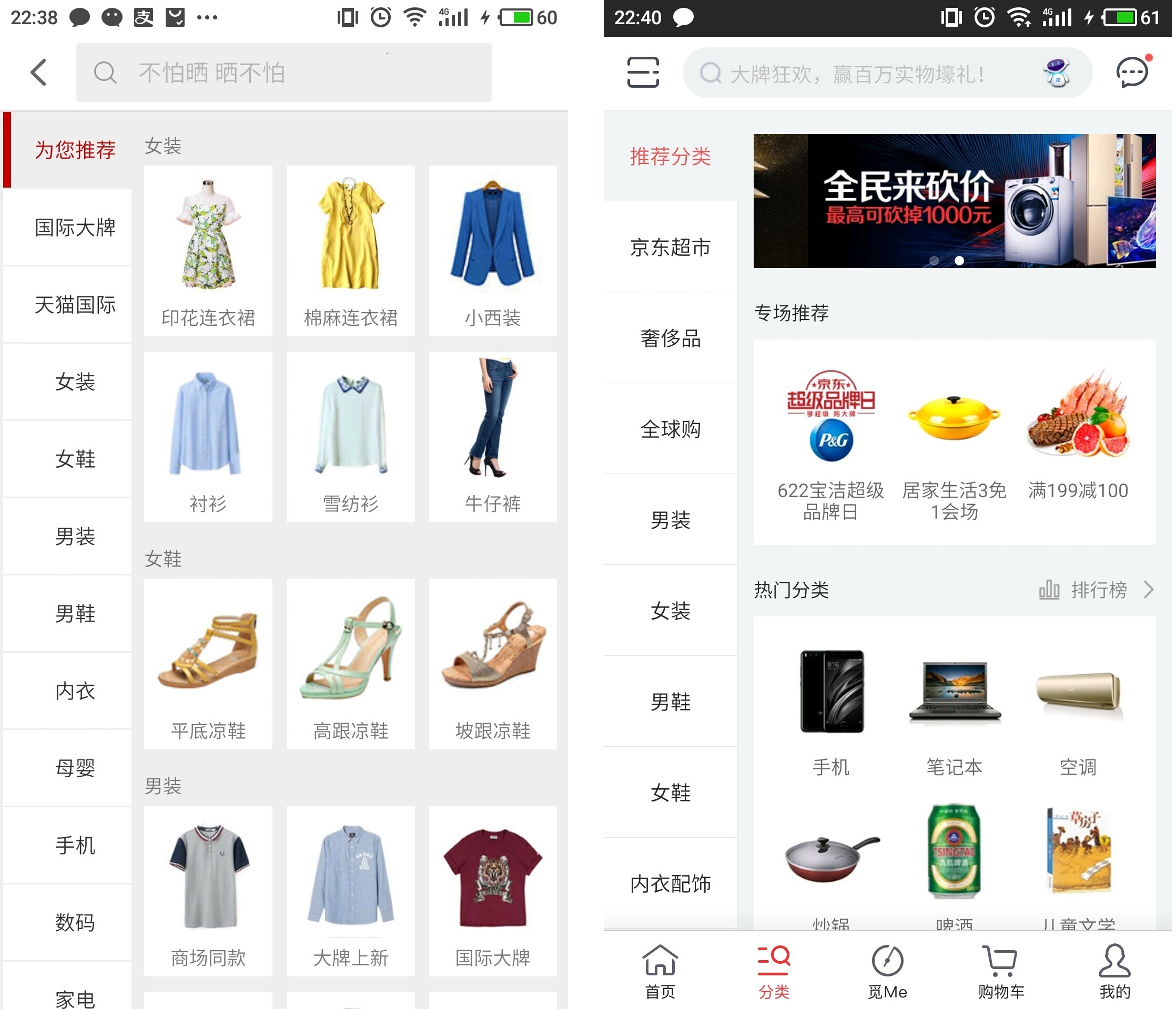 左图是淘宝APP中二级界面“天猫”,右图是京东
