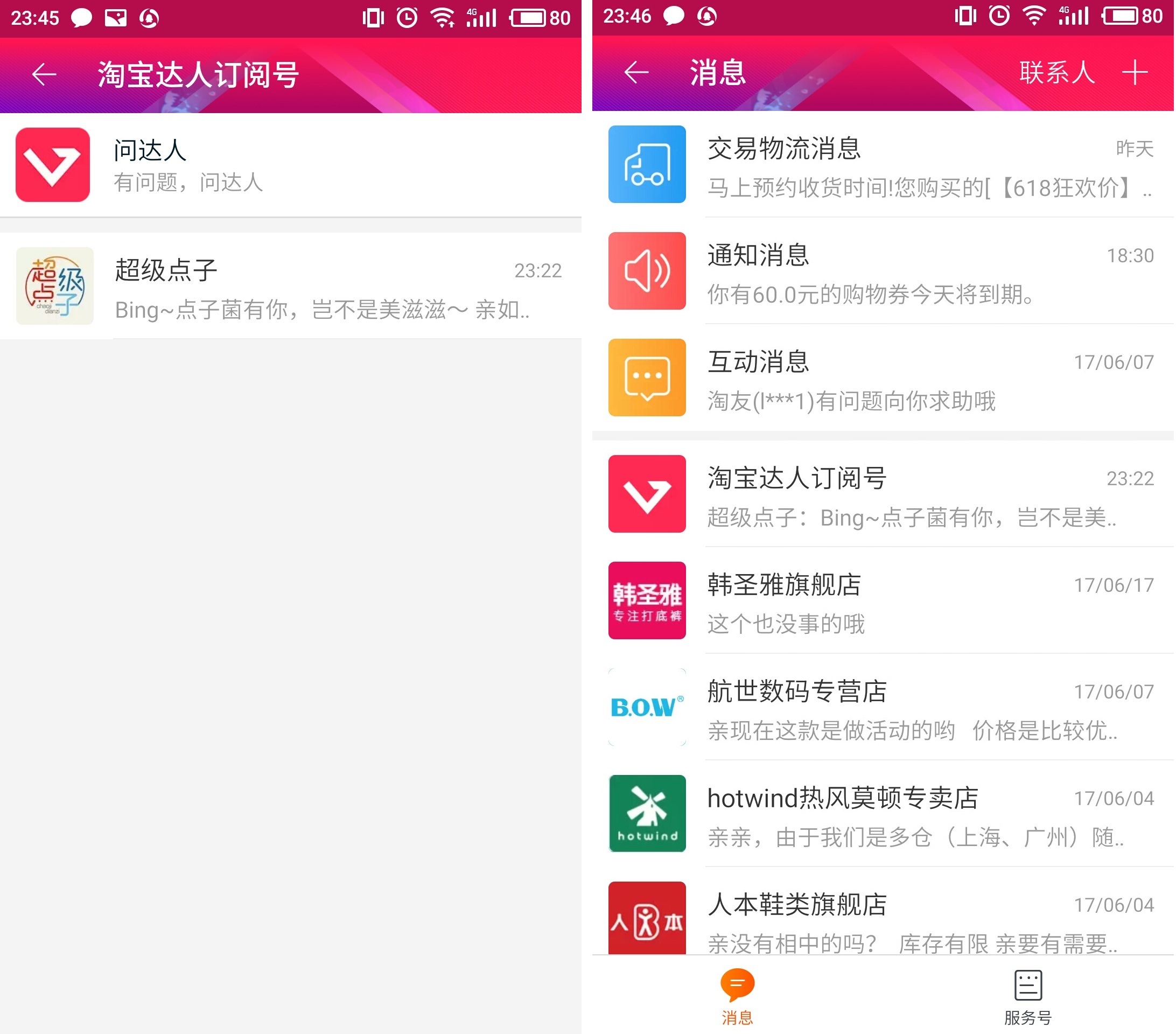 如果细心点,你甚至会发现淘宝版的微信公众平台,藏在了消息列表中。