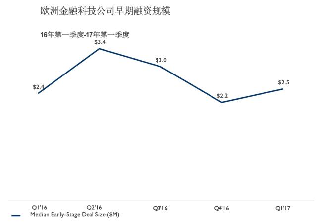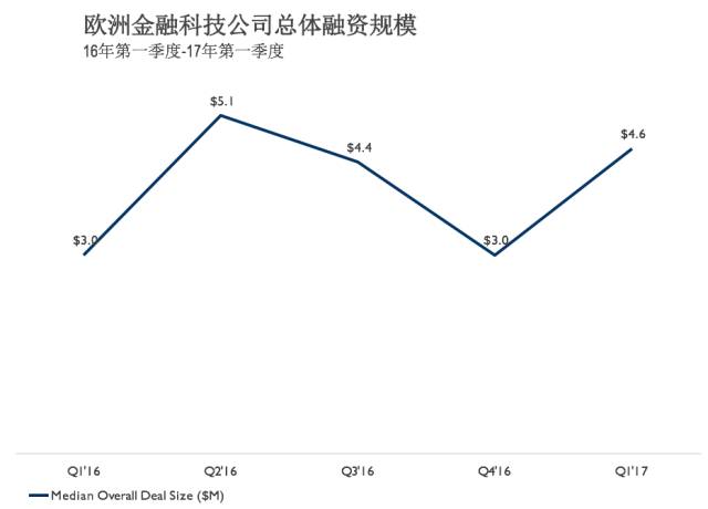 2017年第一季度,欧洲金融科技公司的平均融资额上升到460万美元。