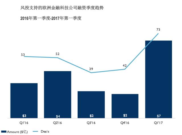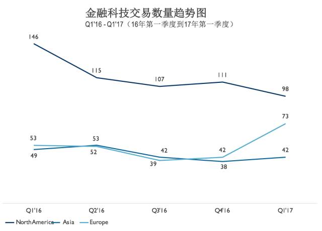 2017年第一季度的欧洲金融科技交易融资超越之前的几个季度。