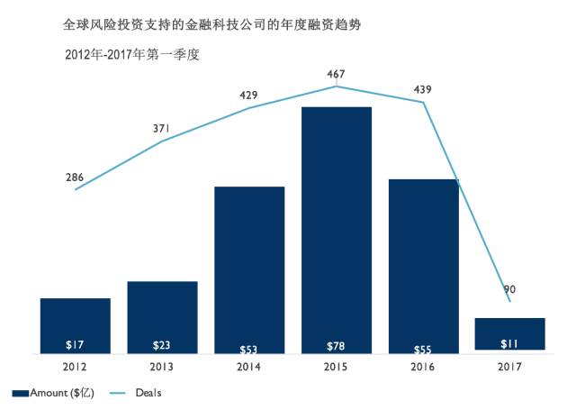 全球FinTech2017一季度投资风向报告:峰值可能已过,VC投资将继续下降