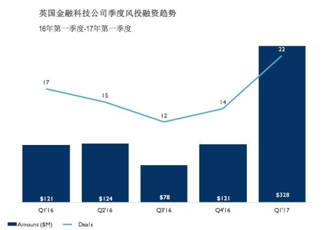 2017年第一季度,风投对金融科技公司的投资额达到了3.28亿美元,其中超过2亿美元来自于对Atom Bank和Funding Circle的融资。