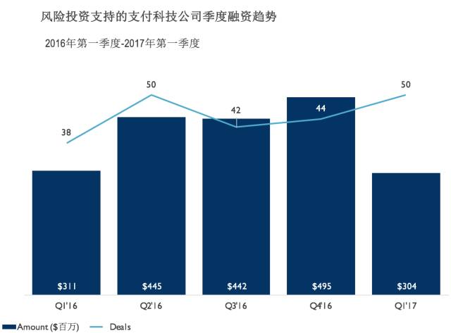 美国金融科技保持着交易的速度,美元投资在2017年第一季度有所下降。