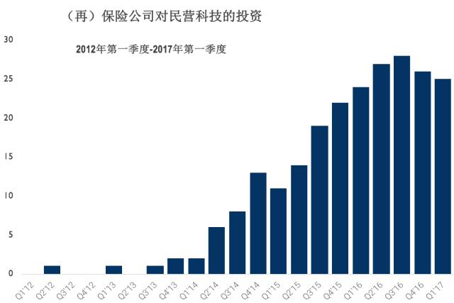 2017年第一季度标志着连续六个季度,(再)保险公司或其战略风险机构投资超过20个的民营科技。