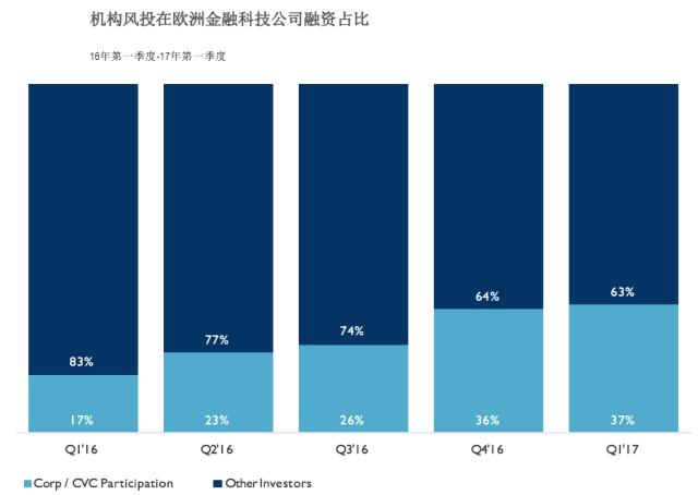 在16年第一季度,战略投资者在欧洲金融科技公司获得的风险投资中占比仅为17%。