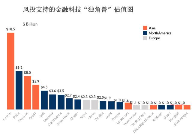 全球22个f金融科技“独角兽”总价值770亿美元。