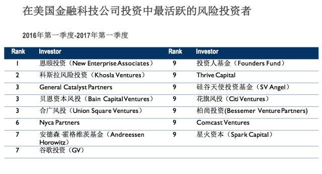 恩颐投资NEA ,科斯拉风险投资KHOSLA 是美国金融科技最活跃的投资者。