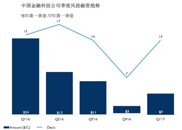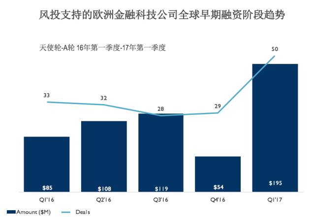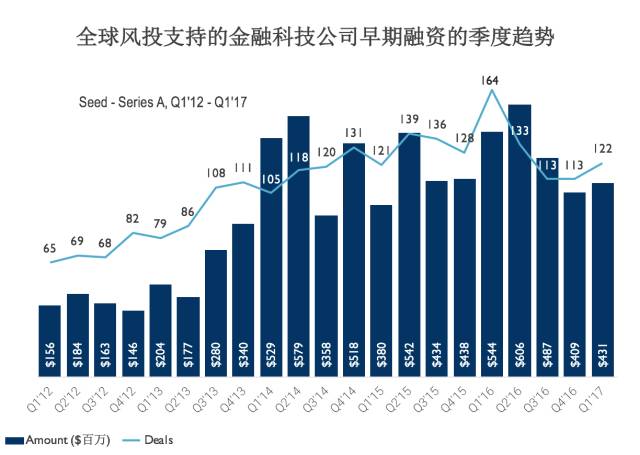 17年第一季度早期金融科技的投资交易和金额有所提升。