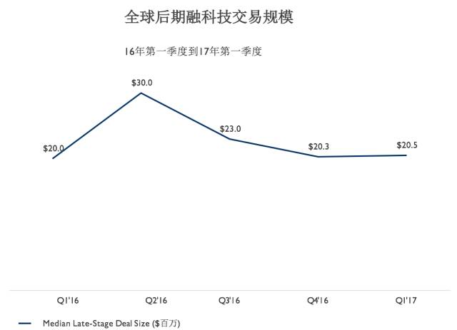 17年第一季度中后期交易规模达到2050万美元,比16年第四季度略高。