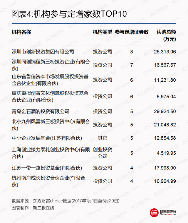 在定增方案减少的趋势下,今年机构投资者参投的趋势也发生变化。在不少机构开始踌躇的时候,以深创投为首的明星投资机构则未放松对新三板企业的投资。