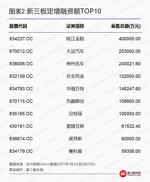 尽管市场清淡,但优质企业在新三板融资仍“如鱼得水”。如皖江金租、大运汽车等优秀挂牌公司动辄数十亿元的融资额自不必说,一些三板新秀因业务与投资大佬们关联,被其“相中”。