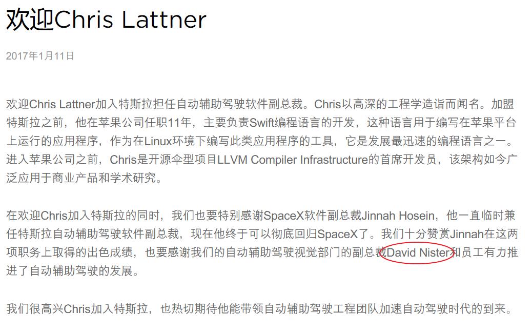 好了,现在的状况是,David Nistér继任者Chris Lattner也已经离开了特斯拉。